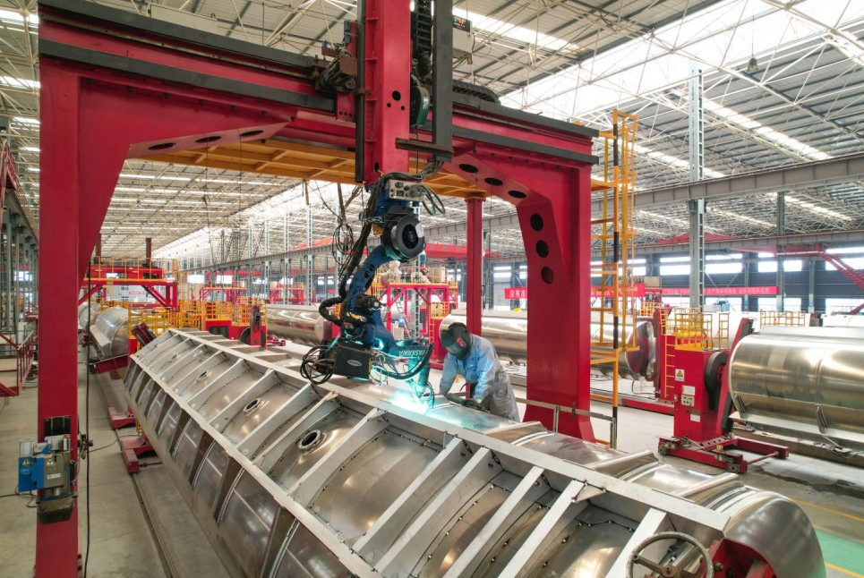 近日,机械公司明航汽车轻量化运输车生产基地,工人们高质量完成一批轻量化罐式运输车的加工制作,正在进行最后的交车检验。