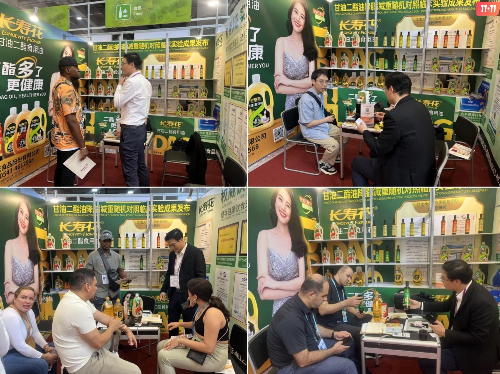 展会现场,工作人员围绕长寿花甘油二酯油的产品优势、技术特性及未来健康食用油的消费趋势等进行了系统化、多维度的阐述,助力海内外合作伙伴精准把握健康消费升级背景下的市场机遇,受到与会客商的高度评价,并引发多轮深入洽谈与合作意向。