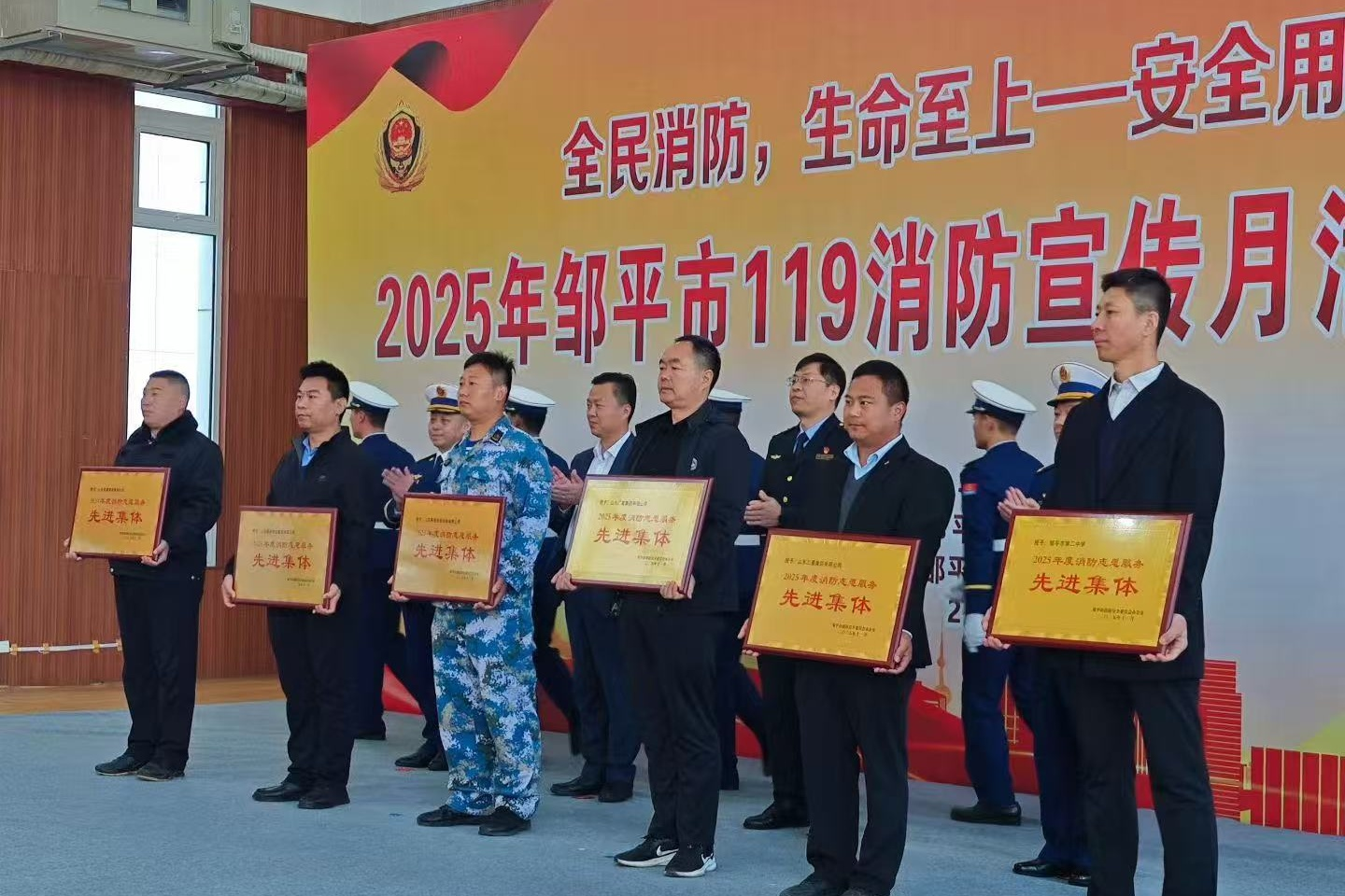 11月5日,2025年邹平市119消防宣传月活动启动仪式在市消防大队举行。会上,凭借在消防志愿服务领域的扎实举措和坚实保障,山东鸿运国际集团获评2025年度消防志愿服务先进集体。
